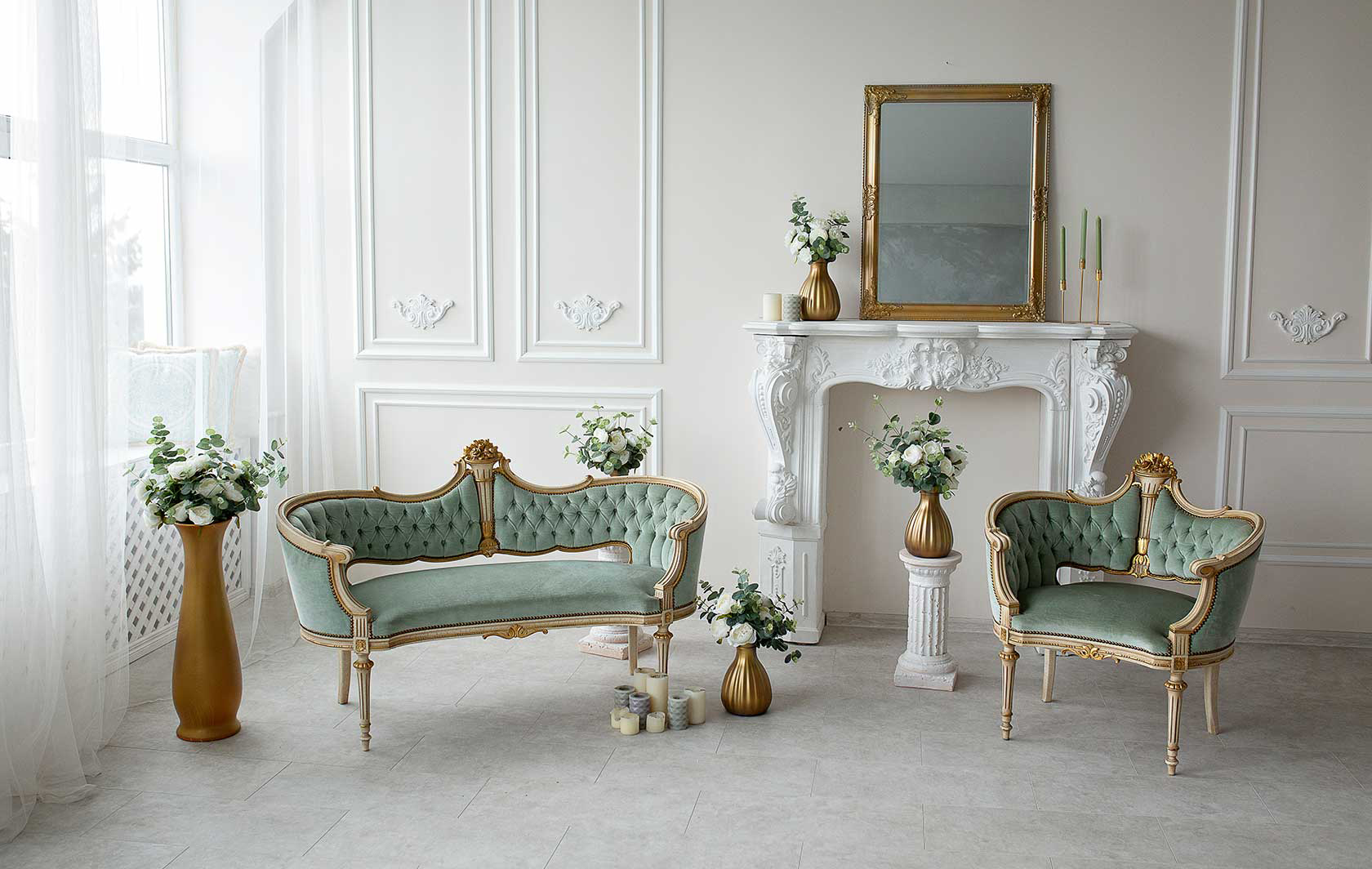 بیشتر کاخ‌ها، مانند کاخ گلستان، به سبک اروپایی چیدمان شدند. مبلمان سلطنتی از کشورهایی مانند فرانسه، انگلستان و روسیه وارد می‌شدند. این مبلمان بیشتر جنبه تشریفاتی داشتند و با چوب منبت‌کاری شده، دسته‌های منحنی، پایه‌های ظریف و پارچه‌هایی از جنس مخمل یا ابریشم ساخته می‌شدند. در ابتدا، تنها درباریان و اشراف‌زادگان به این وسایل دسترسی داشتند.