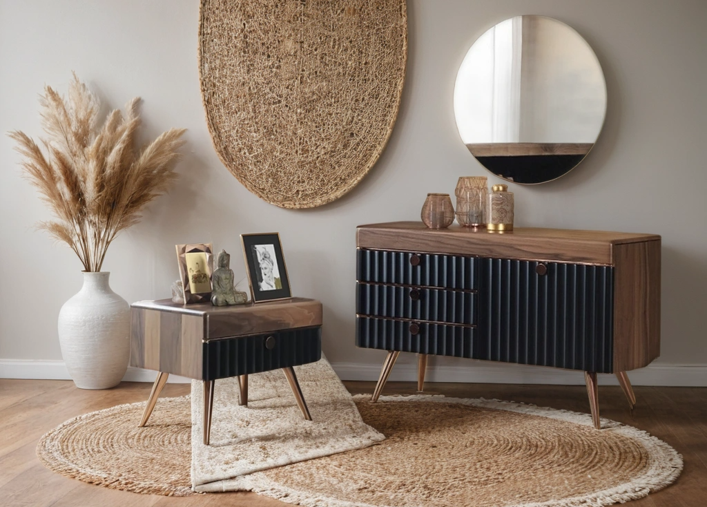 • میز آرایشی: میز آرایش با طراحی مدرن و همراه با آینه که به فضای اتاق جلوه‌ای شیک و مرتب می‌بخشد.