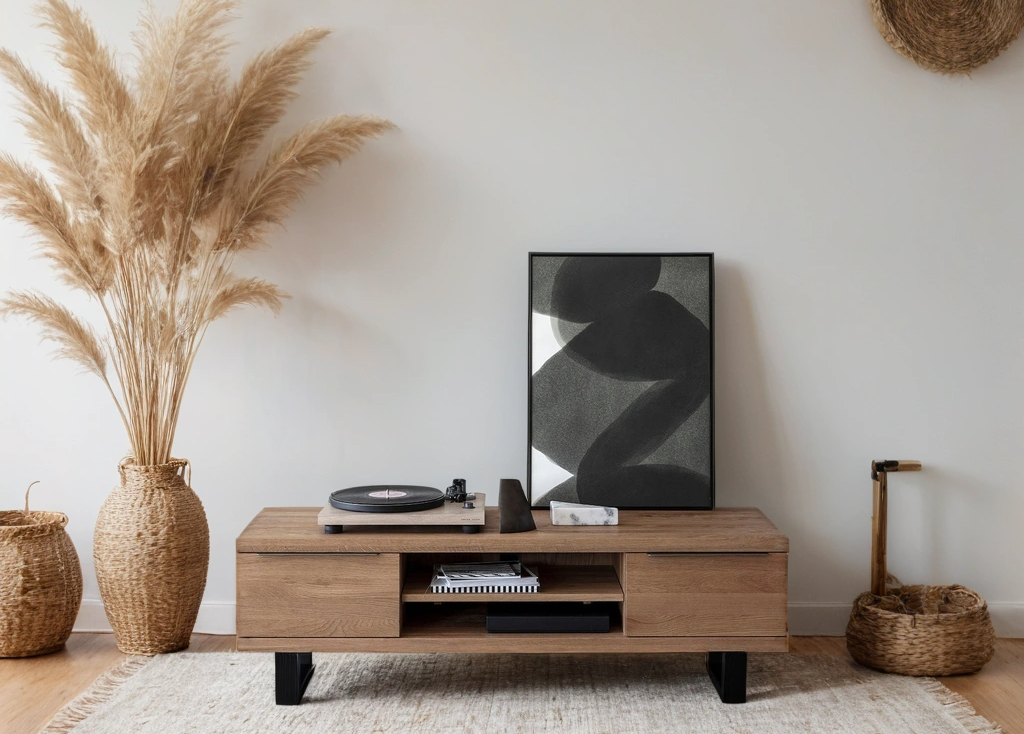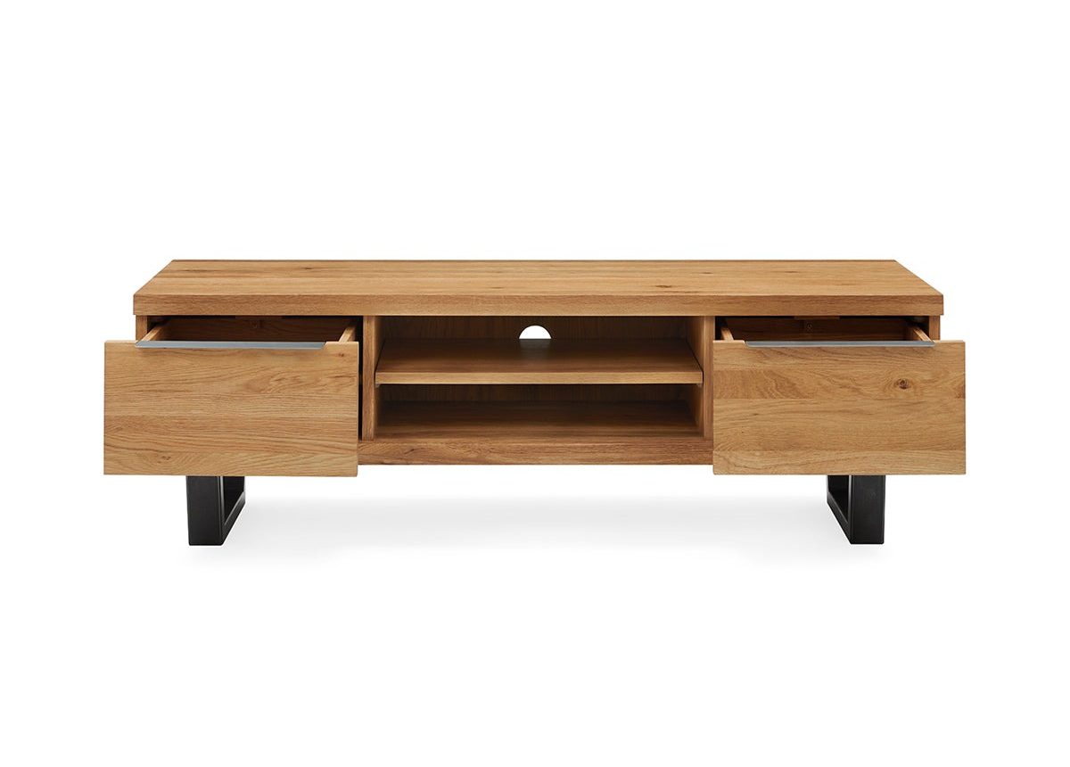 میز تلویزیون با ترکیب چوب راش و قاب فلزی مشکی، ظاهری معاصر و شیک به فضای نشیمن شما می‌بخشد. دارای ۲ کشو جادار برای وسایل و لوازم جانبی، همراه با یک قفسه باز جهت قرارگیری دستگاه‌های چندرسانه‌ای است. سیستم مدیریت کابل به شما کمک می‌کند محیطی مرتب و بدون سیم‌های مزاحم داشته باشید. ابعاد استاندارد ۱۳۸ × ۴۷ × ۴۴ سانتی‌متر با پایه‌های ۱۵ سانتی‌متری فلزی، ترکیبی از استحکام و زیبایی را ارائه می‌دهد. با ظرفیت وزنی مناسب (۴۰ کیلوگرم برای سطح، ۸ کیلوگرم برای طبقه و ۷ کیلوگرم برای هر کشو)، انتخابی کاربردی و مقاوم است. امکان خرید به‌صورت نقدی یا اقساطی ۳ ماهه فراهم است.